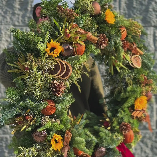 Designed with a lush mix of premium fir varieties, this large wreath brings the richness and warmth of the season to any entrance. Full, fragrant, and thoughtfully detailed, it offers a classic holiday look with a natural feel. Ideal for large doors, entryways, or spaces that need a bold and festive accent.