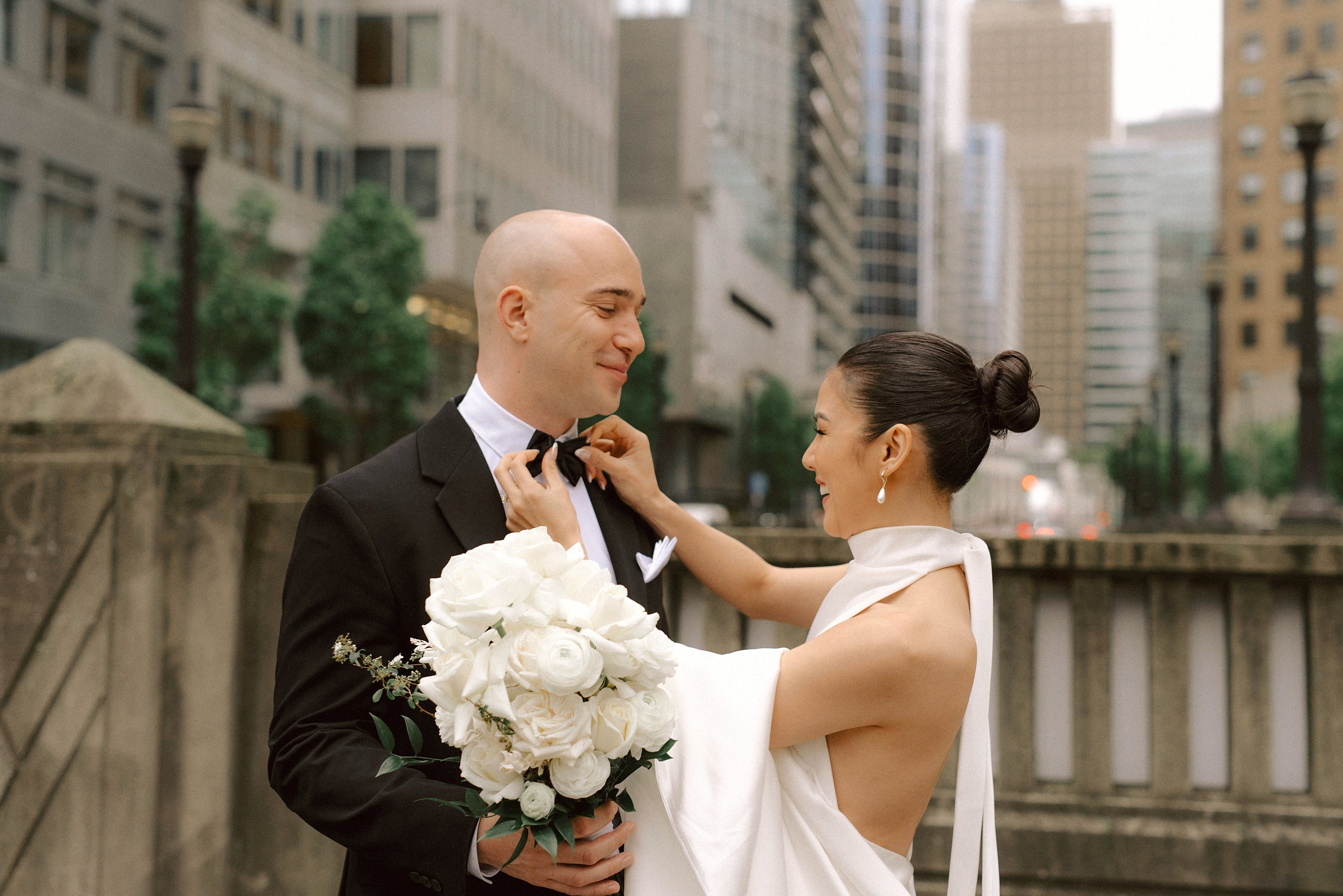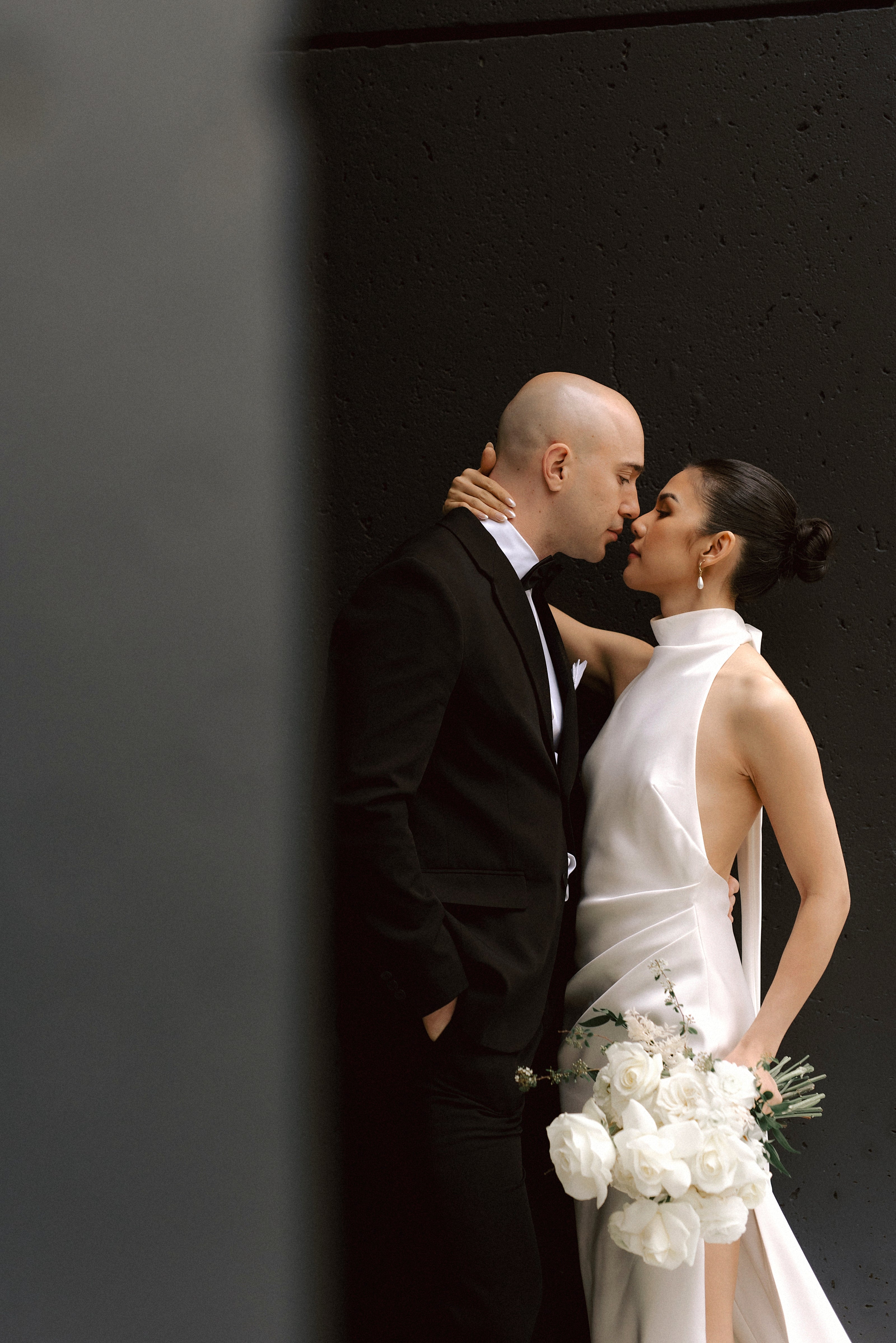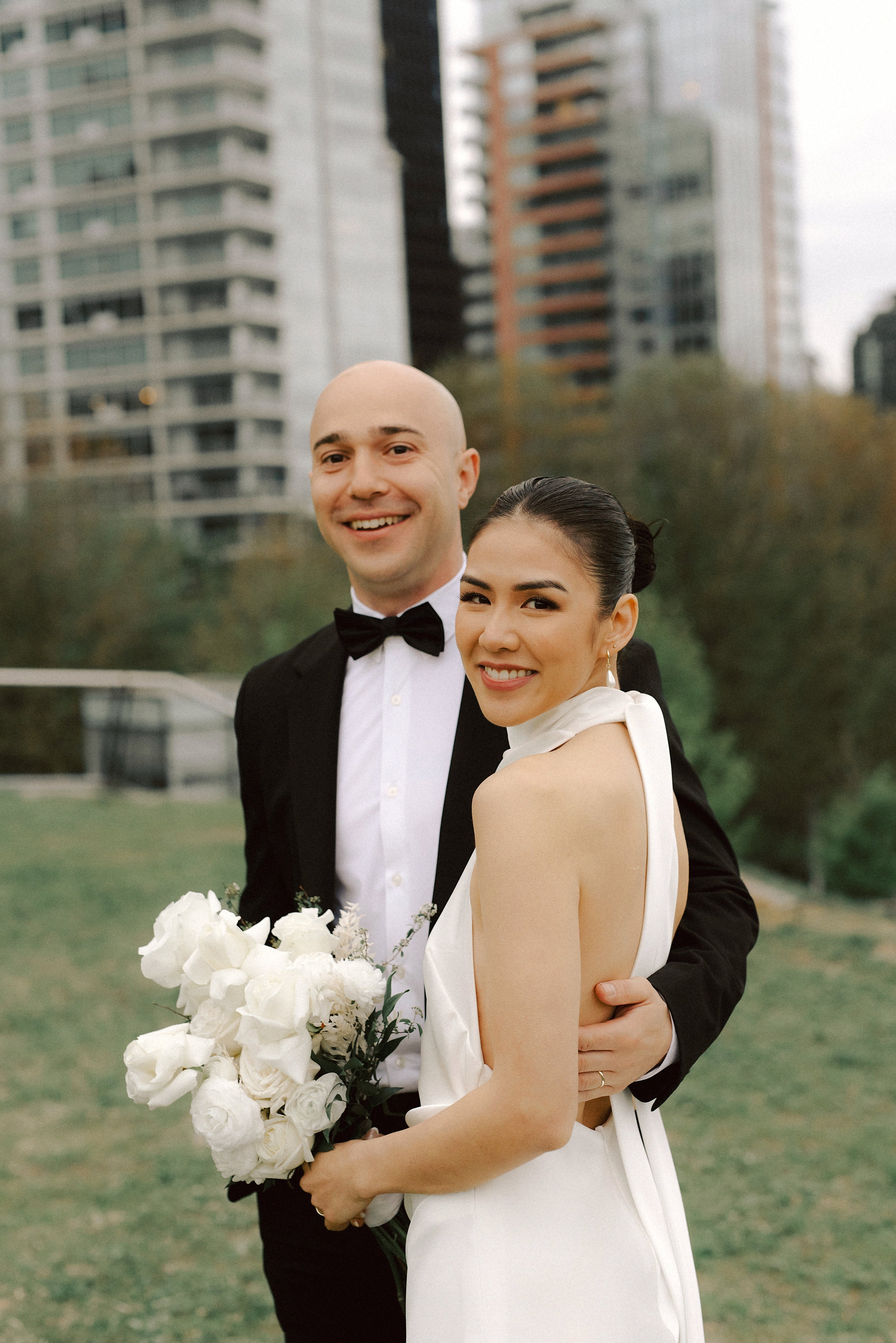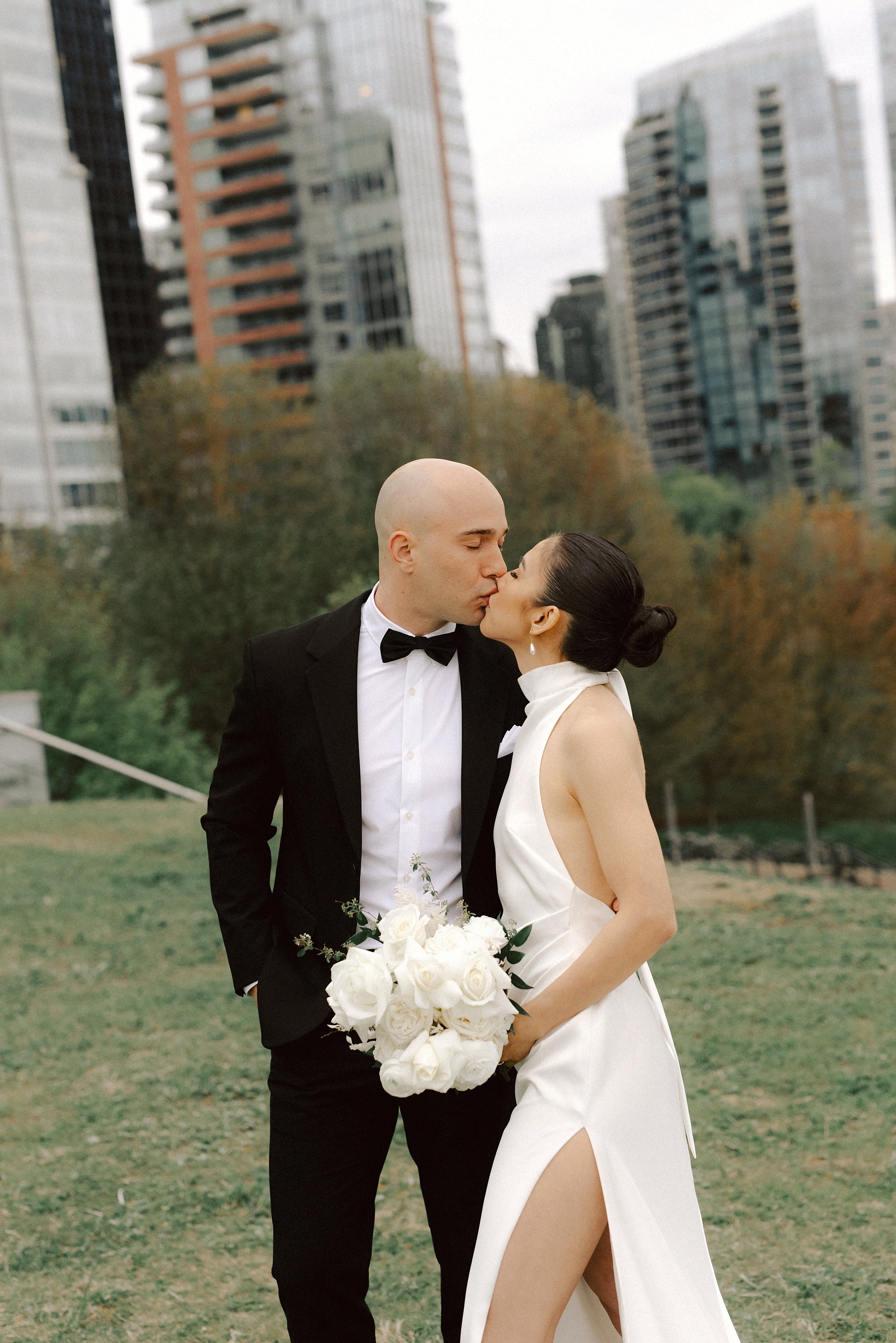 Noah and Annie’s elopement was a celebration of modern romance, featuring a timeless and elegant aesthetic. Annie envisioned a bouquet of long-stemmed white roses, beautifully paired with delicate ranunculus, airy spirea, and subtle greenery accents. The result was a stunning arrangement, perfectly crafted for her magazine-worthy wedding photos.