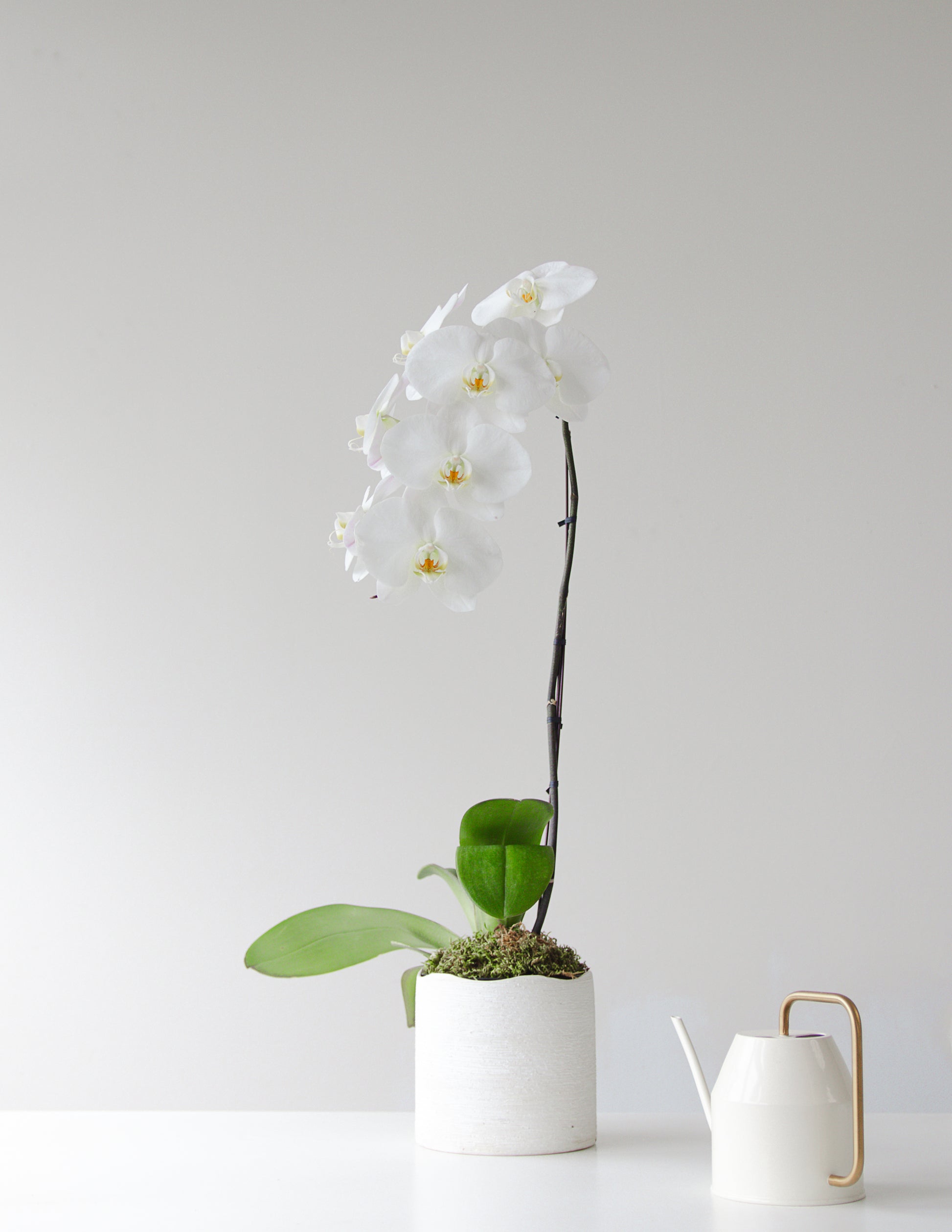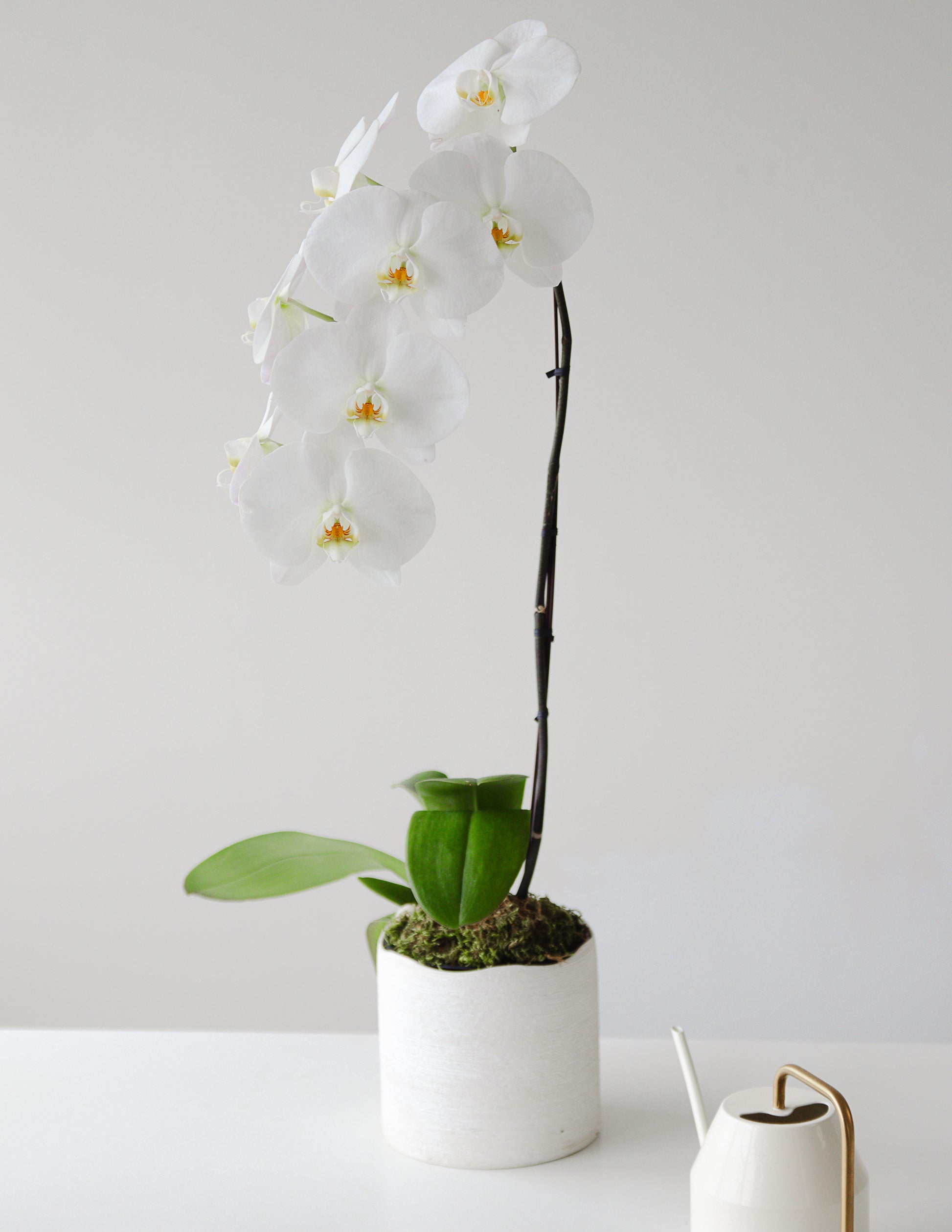 Large Phalaenopsis Orchid in our white textured ceramic container.