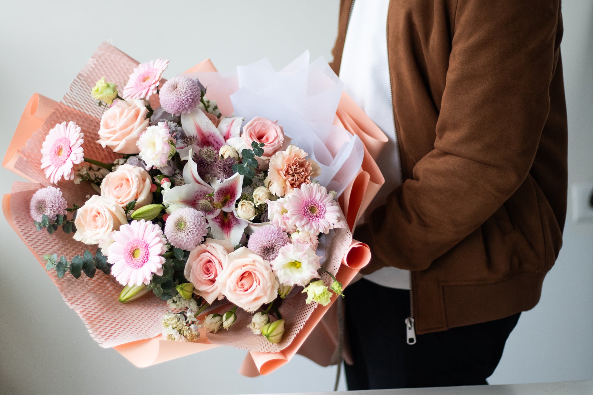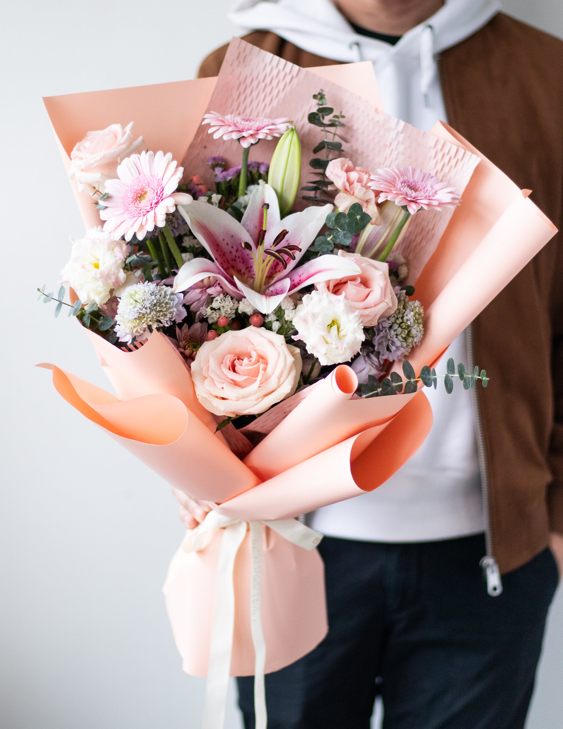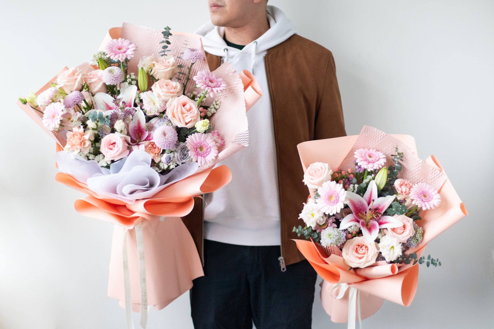 The photos on our website feature flowers at full bloom, carefully timed for photography. Your arrangement may include blooms in earlier bud stages, allowing the recipient to enjoy them longer as they gradually open and reveal their natural beauty.